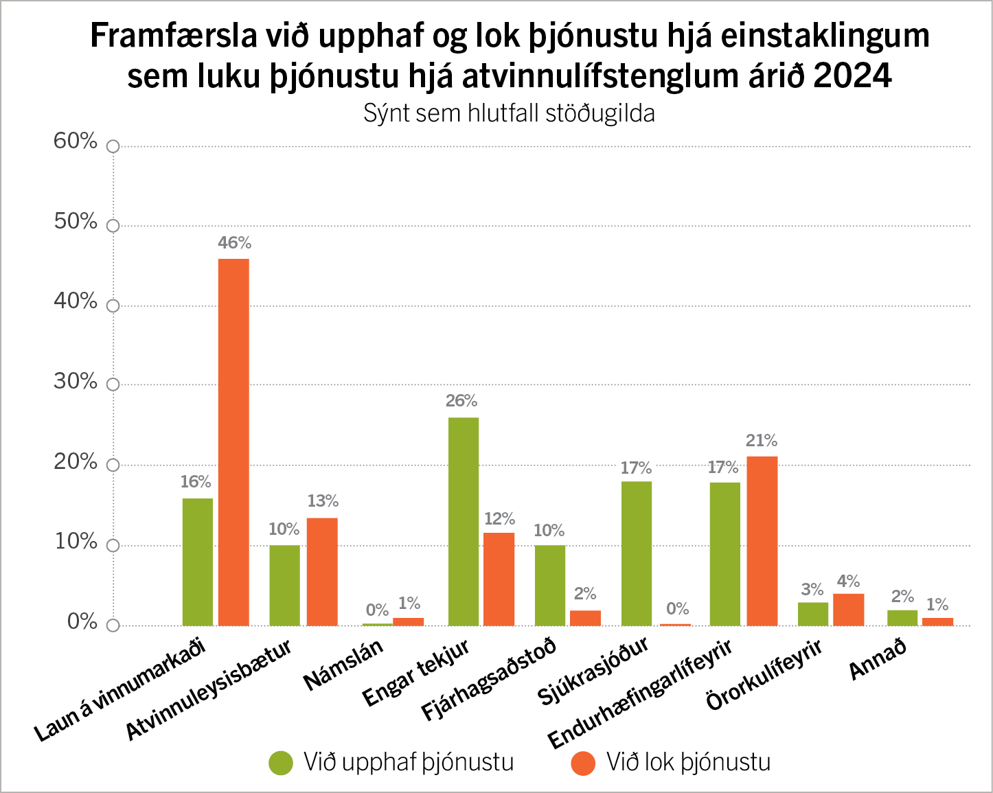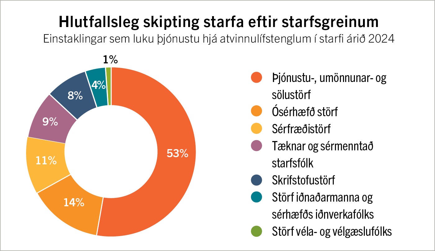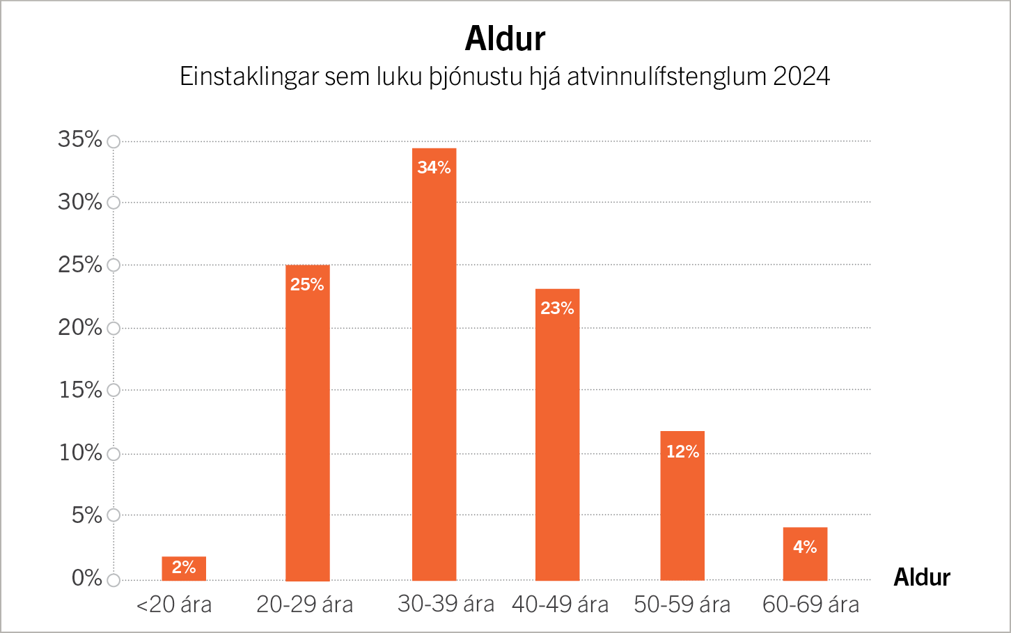 Árið 2024 bárust 434 tilvísanir til atvinnulífstengla en 424 einstaklingar luku þjónustu hjá þeim. Við lok þjónustu voru um 60% þeirra með vinnugetu og virkir á vinnumarkaði, þ.e. fóru í vinnu, nám eða atvinnuleit.