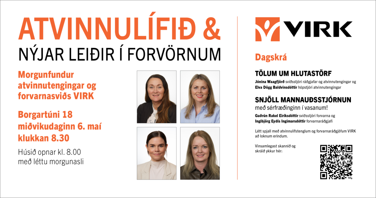 Morgunfundur atvinnutengingar og forvarnasviðs VIRK verður haldinn í Borgartúni 18 miðvikudaginn 6. maí kl. 8.30 – húsið opnar kl. 8.00 með léttu morgunasli og fundi lýkur kl. 9.15.